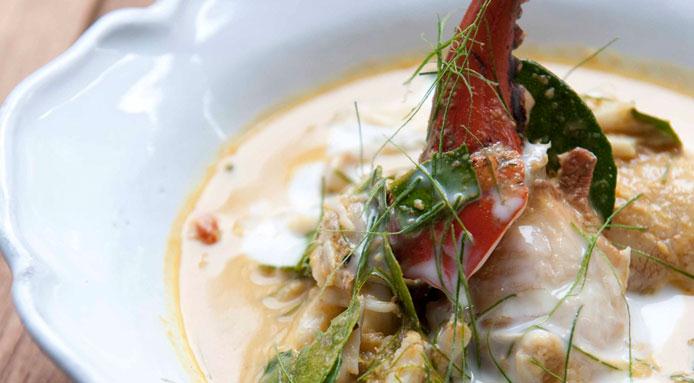 Chef Anatoly Komm from Moscow takes varenyky (traditional Russian dumplings) to the next level, with a delicate crab stuffing set on a white wine sauce.