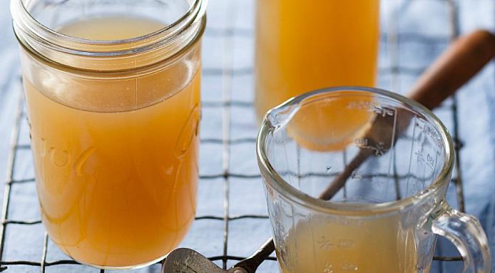 Once the stock is ready, remove the pieces of meat and vegetables. The next step is to strain the liquid through a kitchen towel soaked in very cold water. The contrast between hot and cold will cause the fat to make contact with the cold cloth and remain 'trapped' in the canvas while the liquid is strained into a bowl or large container.