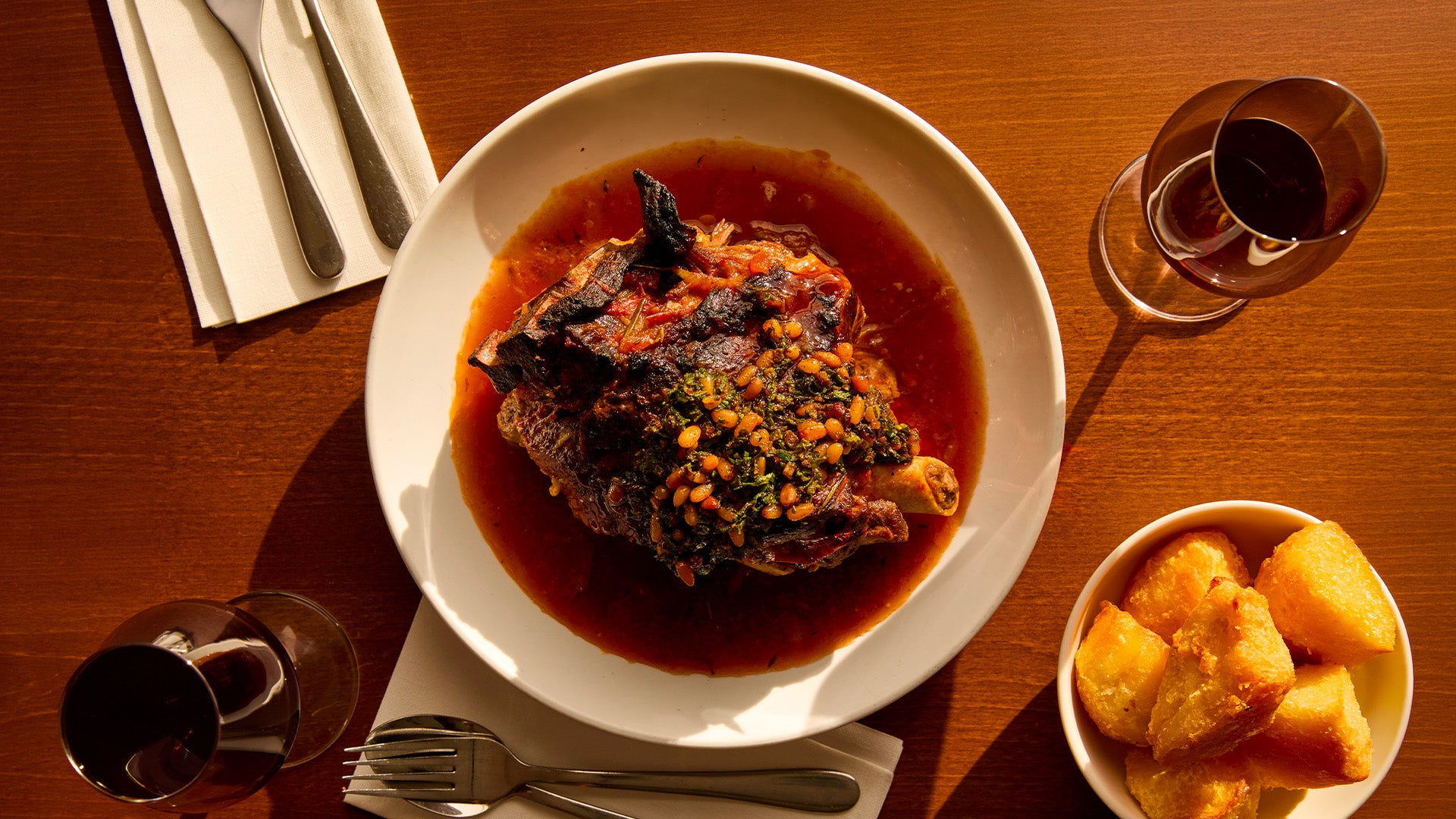 His recipe for braised hogget can also be made one or two days in advance to “absorb flavour from the braising liquor”, so you can take things a little easier on the day itself. Just remember “to check the seasoning once it’s hot again, as sometimes longer stints in the fridge can sap salt,” says Davies.