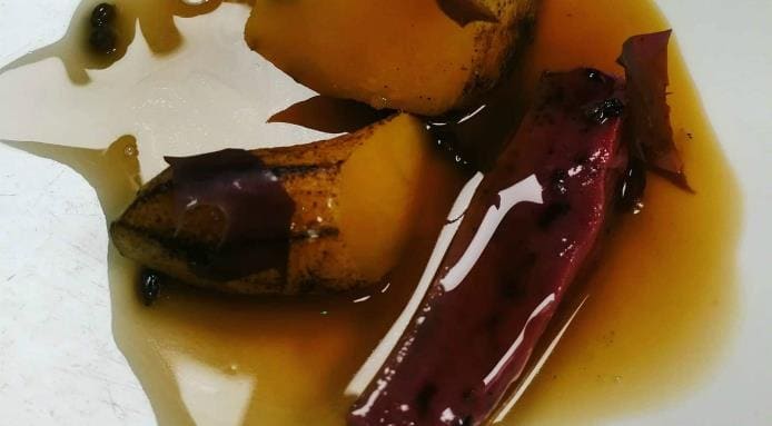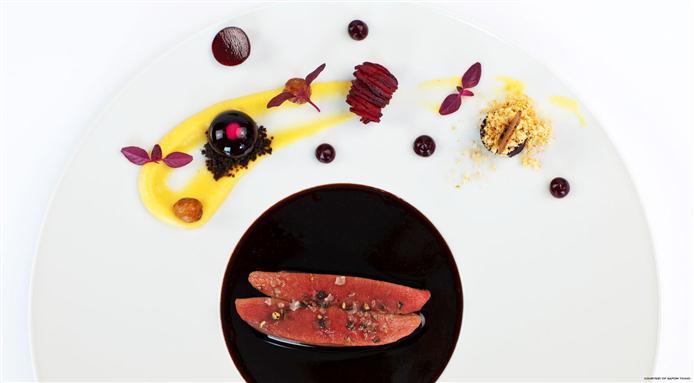 PIGEON, FORTUNELLA AND CAULIFLOWER, CREAM OF BEETROOT, CHINOTTO AND SHERRY CASK GRAPPA
